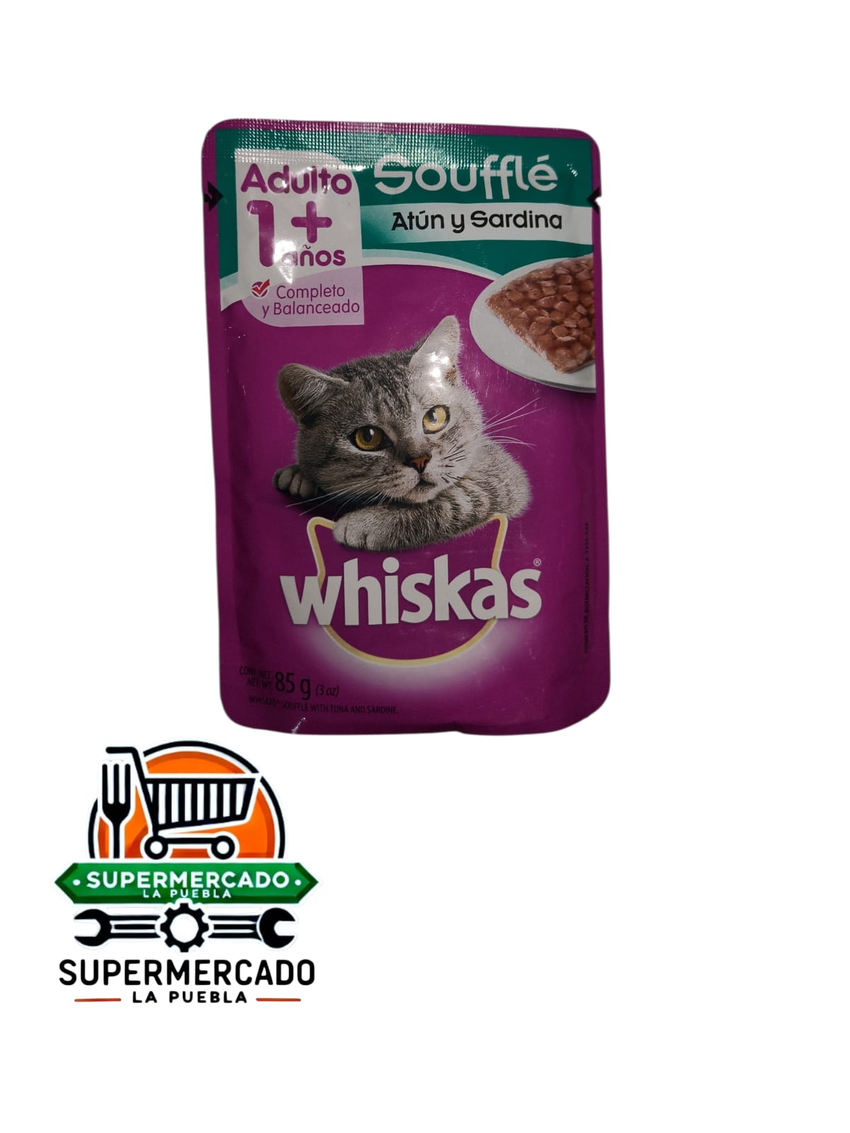 Alimento húmedo whiskas fillets atún y sardina souffle adulto 85g