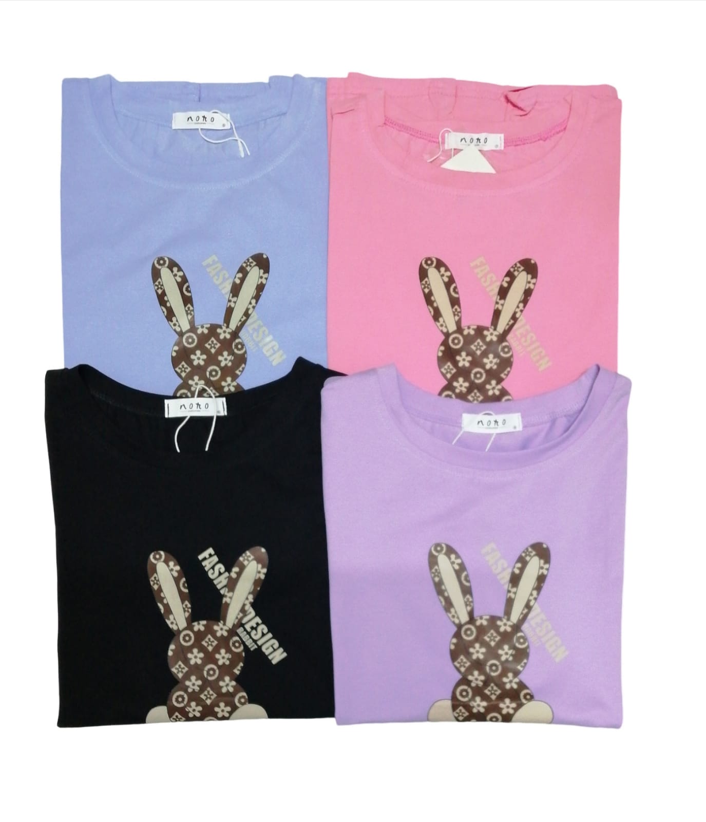 Camiseta con estampado de conejo, y sencilla
