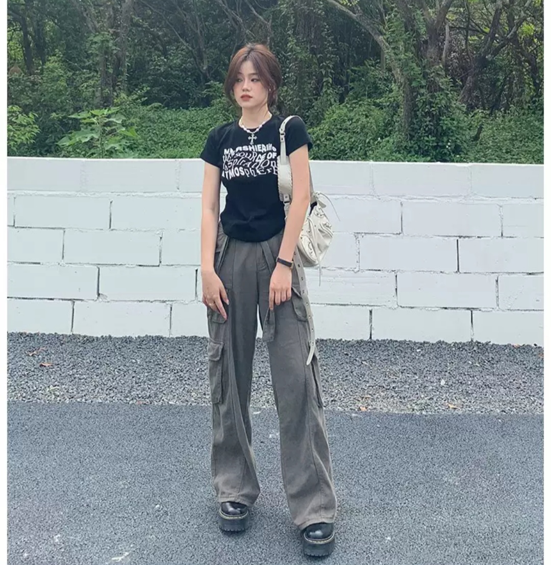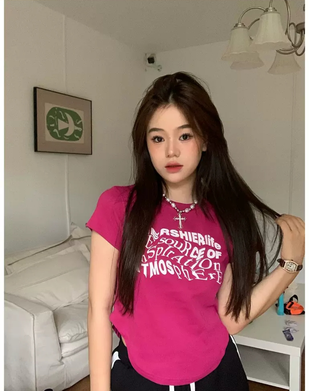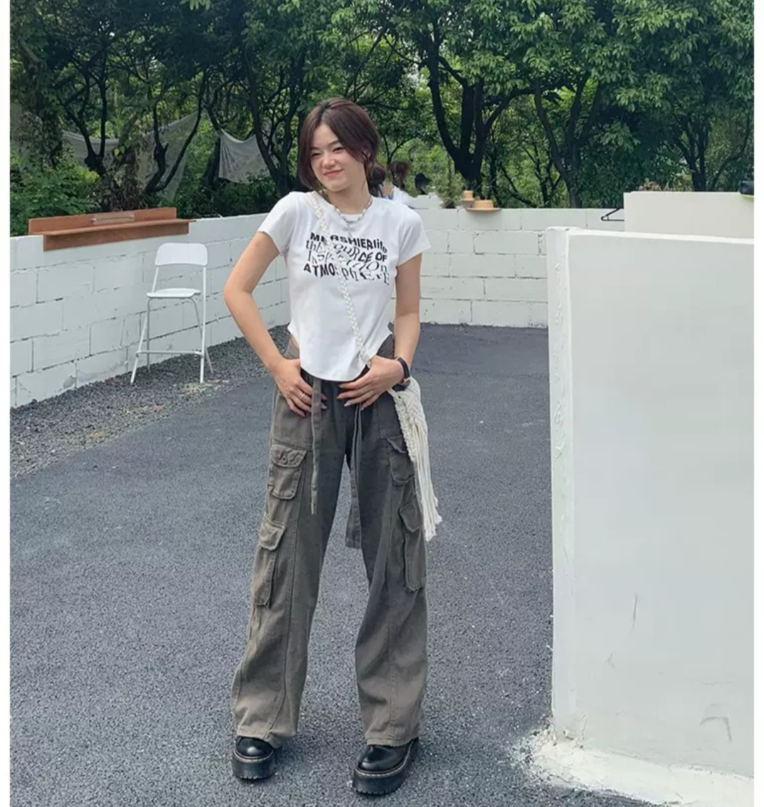 Camiseta corta/cropped con estampado elaborado