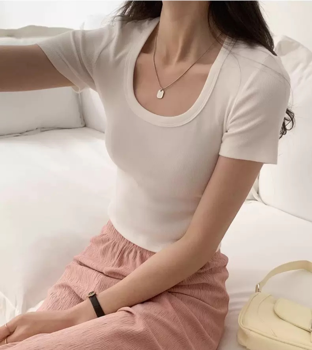 Camiseta lisa y sencilla, con cuello redondo