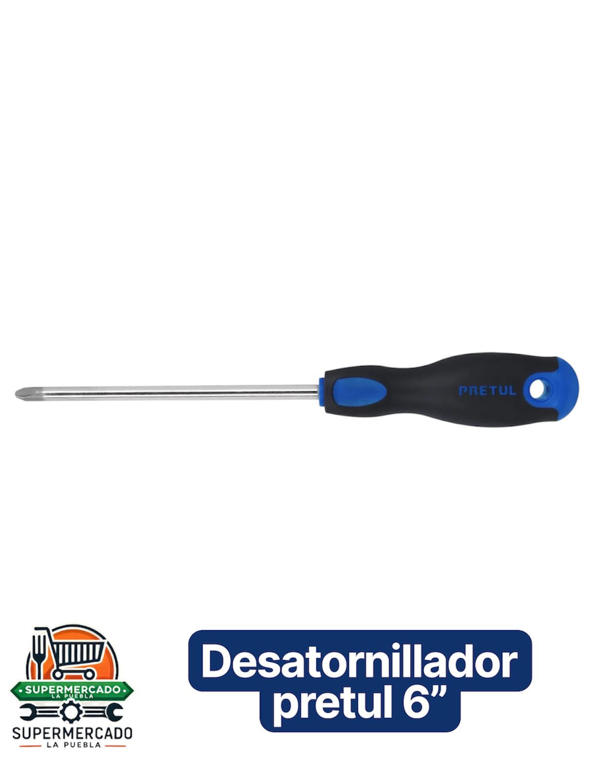 Desatornillador estrella 5/16 pulgadas x 6 pulgadas de largo marca pretul ,PH2 , mango de hule color negro y azul comfort grip.
